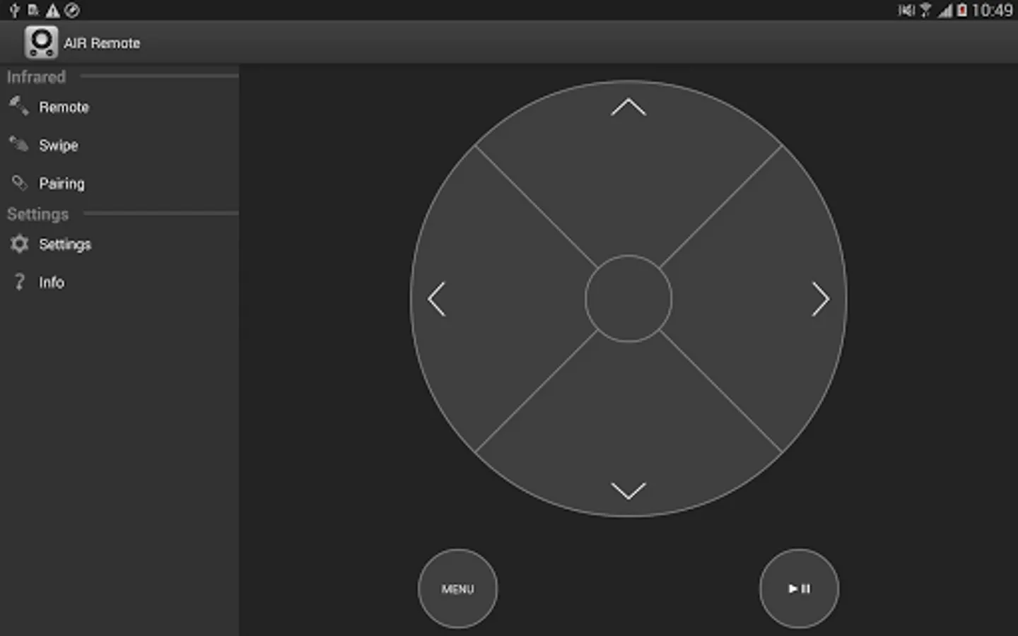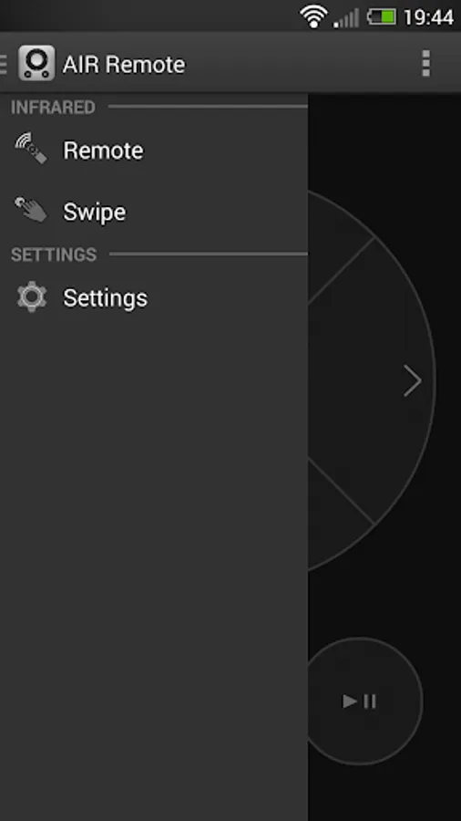 On the sidebar you will find the choice between the original remote and the swipe view. After selecting the swipe screen, you can activate the directions by swiping into a direction. Tapping once represents the confirm button and tapping twice will trigger the menu button.