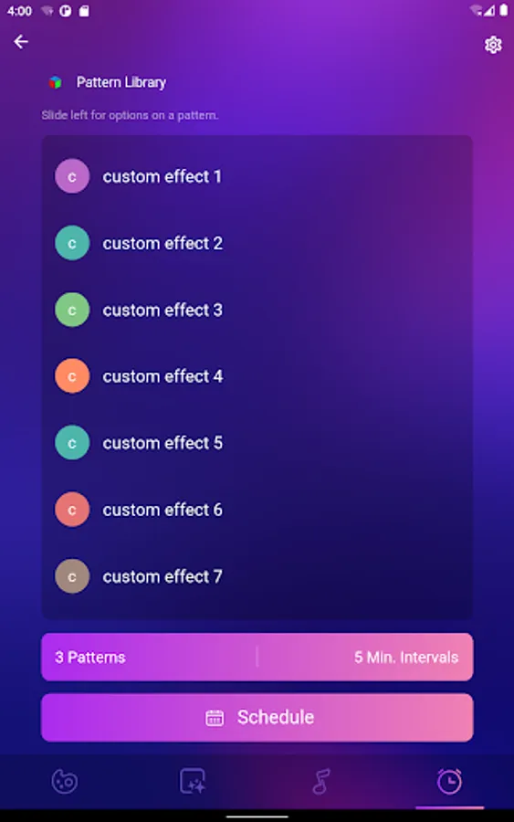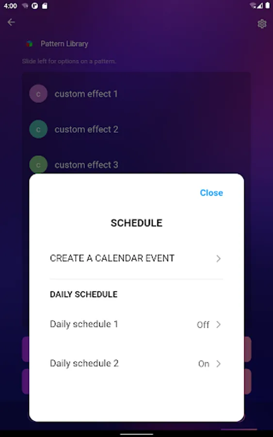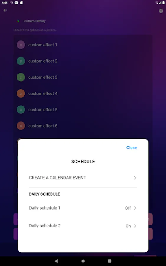 With this very intuitive app the user can customize exact patterns and quantity of the diodes to custom create any pattern imaginable.