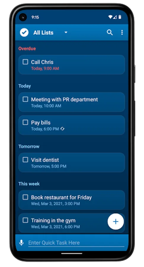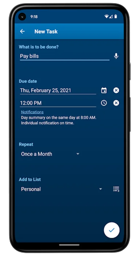 • Support for tasks without a due date, all-day-long tasks and tasks at a specific hour of the day