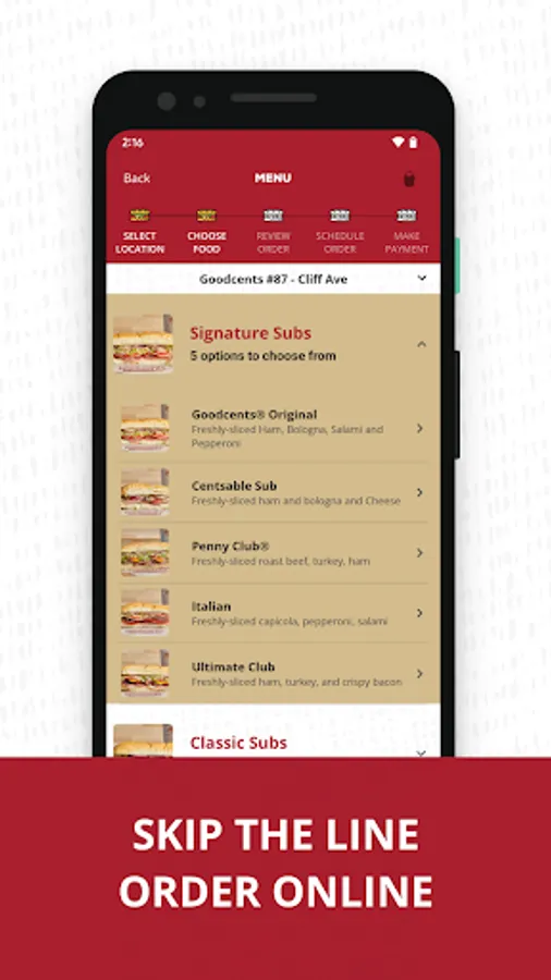 Good food that makes Goodcents. Come to the home of the 16-inch sub and savor pillowy soft bread baked twice a day, along with sliced-to-order meats and cheeses, piled high with fresh veggies, a splash of vinegar and oil, and don’t forget the oregano. With a mission to make the little guy famous, we proudly craft the most delicious subs, delectable pastas, crave-worthy cookies, and convenient Goodcents To Go meals on planet Earth.