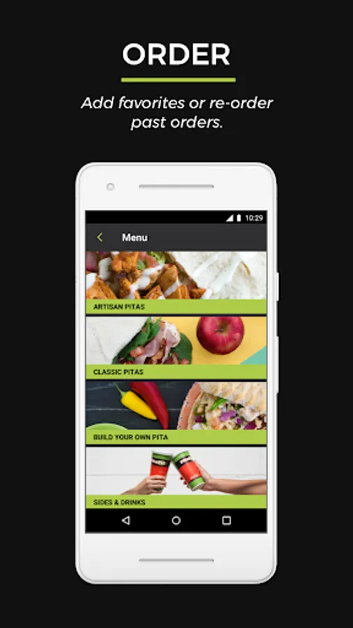 We’ve updated the look and wanted to provide you easier and faster ways to order our pitas, save your favorites or easily re-order past orders with just a few taps.
