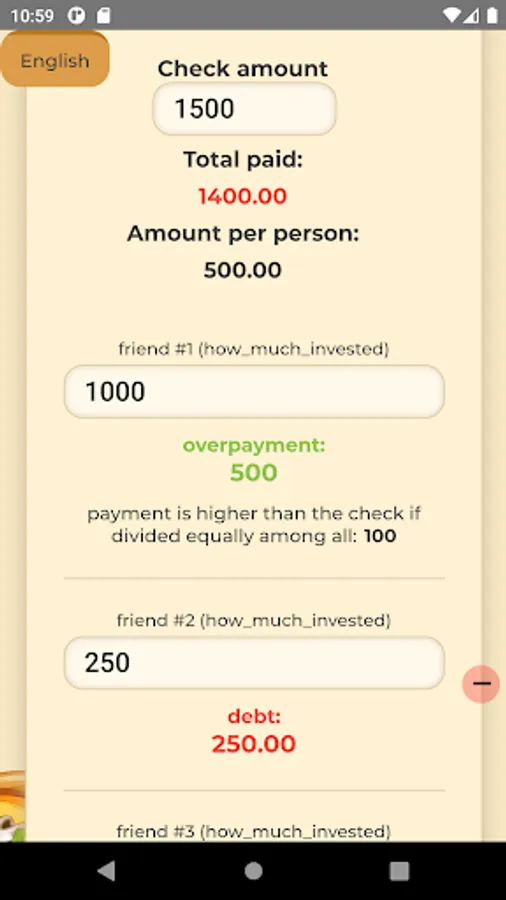 Если же вы делаете совместные закупки и нужно оплатить обозначенную сумму – указывайте, кто сколько может выложить и получите легкую калькуляцию, как потом поделить затраты между собой, заплатив по чеку сейчас.