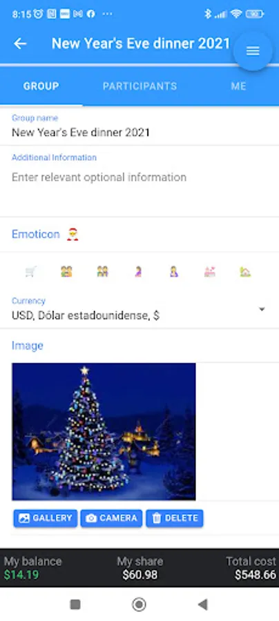 To facilitate the use of the application and make it easier to handle, you will be able to associate images in different areas of the application: user profile, group of expenses and notes.