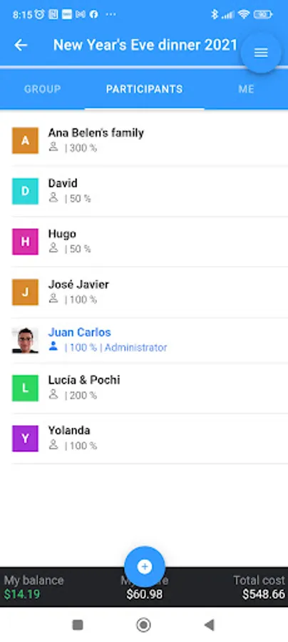 Share the groups with the participants, so that they have access to it, can identify themselves and make their own annotations of expenses. Don't carry all the work yourself!