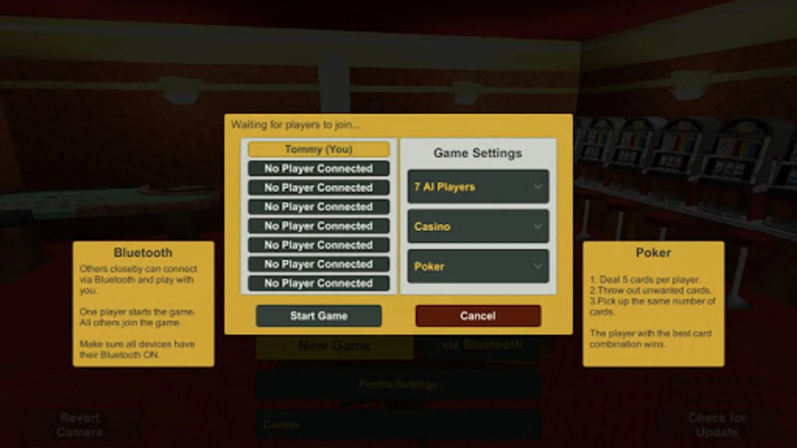 No need for an internet connection. Use Bluetooth to connect to other 3D Card Games players nearby!