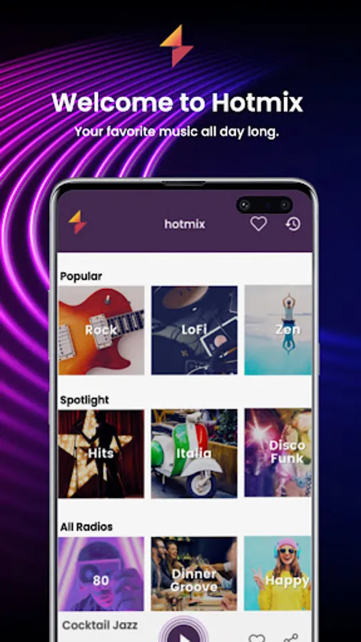 Hotmix is a range of digital and music radios, offering more than 50 themed stations.