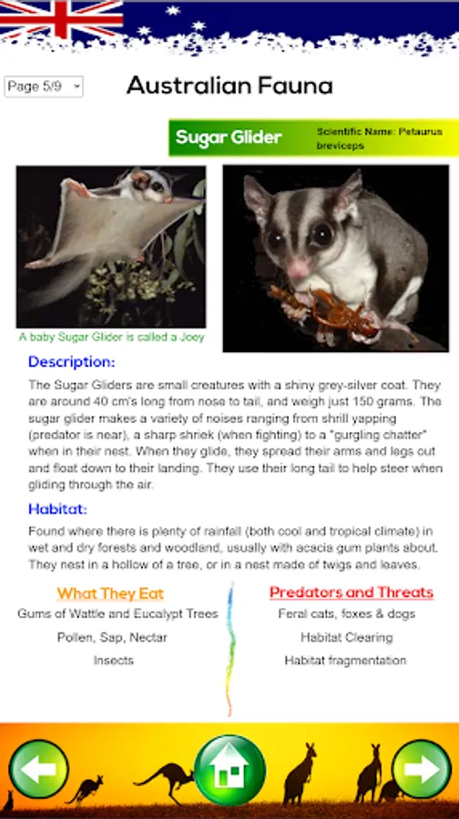 ★ Information on Australian Fauna such as the Platypus, Sugar Glider, Emu, etc.