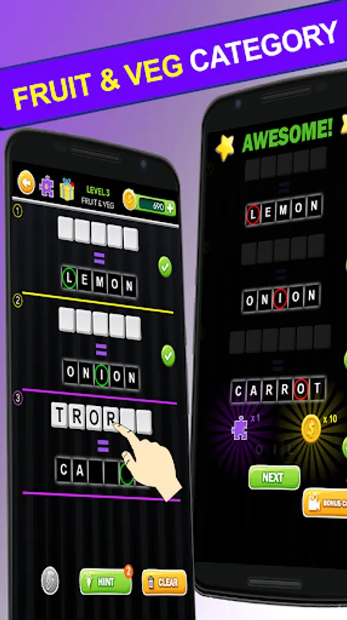 This Words Unscramble puzzle game comes with a simple, yet exciting gameplay that will allow you to get delighted with different types of words and help you to remember and learn new words. You can ask your kids to connect letters to make words through this Words Puzzle game and let them find fun in words while they learn something new and hone their vocabulary.