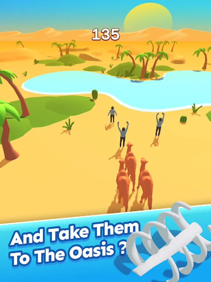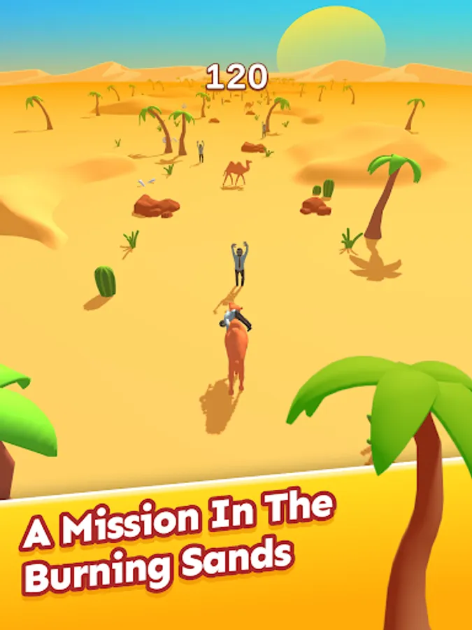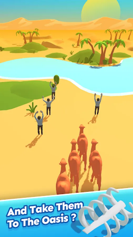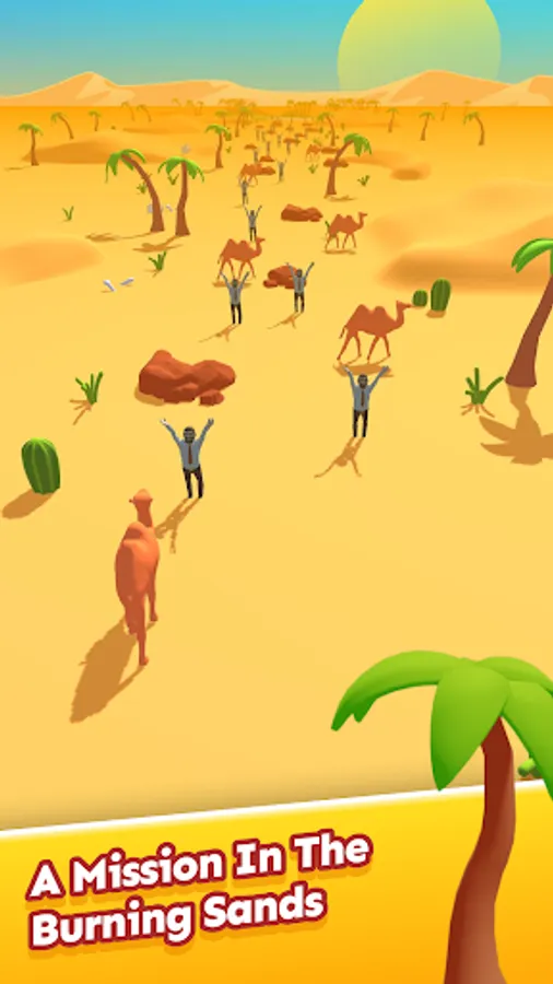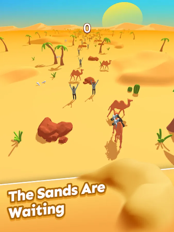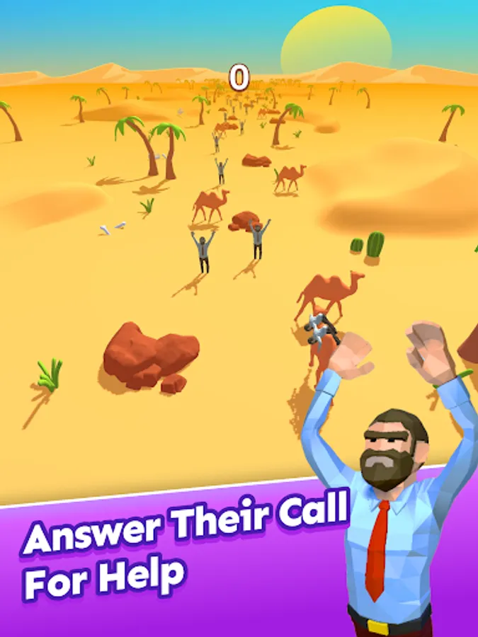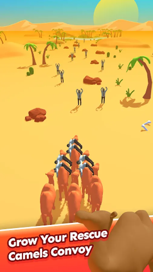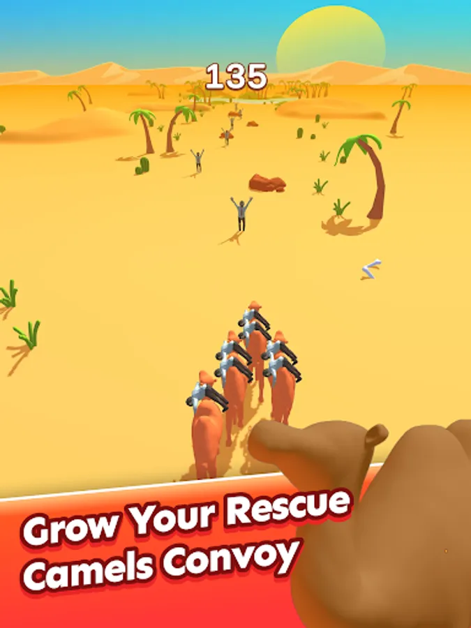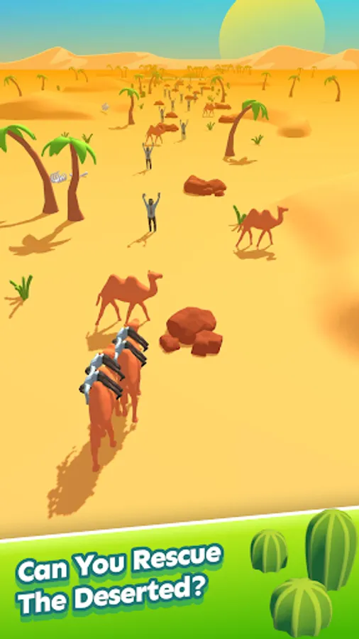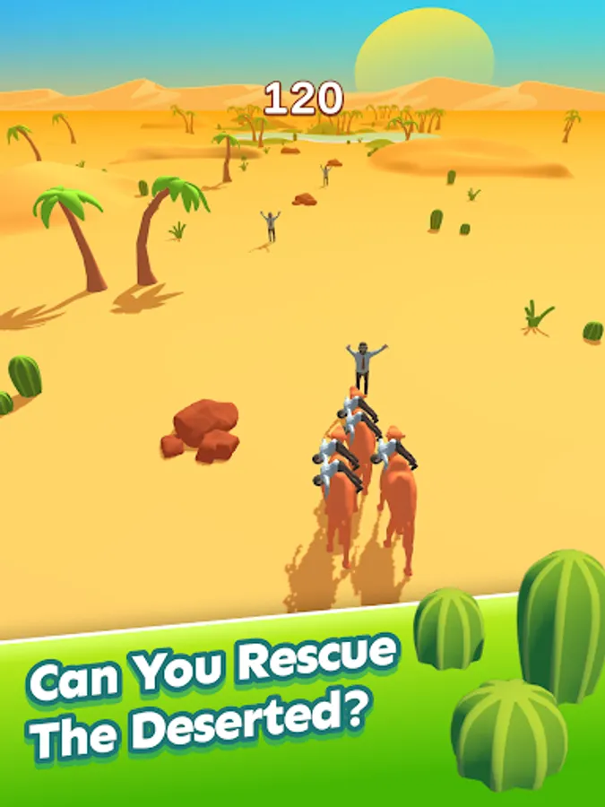 Welcome to the burning sands of the desert where many people got lost and your mission is to save them, get all the people on your trusty rescue camel's back and take them to the oasis, avoid all obstacles and collect more camels to add them to your rescue convoy, can you save all the deserted?!?