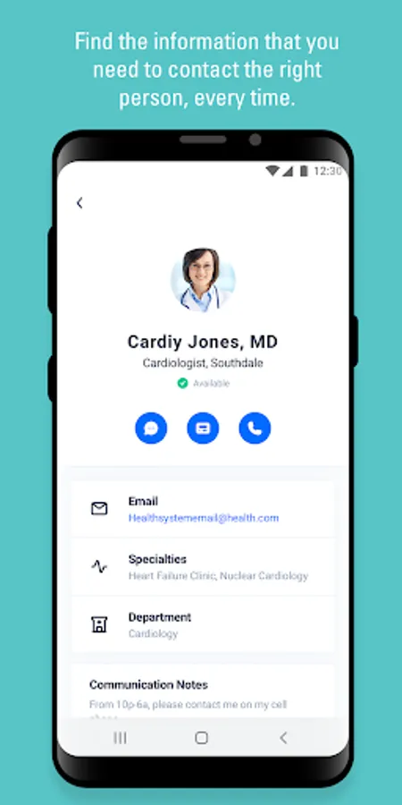 • Directory with People, Groups, On-Call and Care Teams with quick actions to call and message