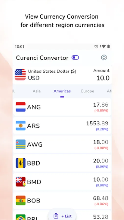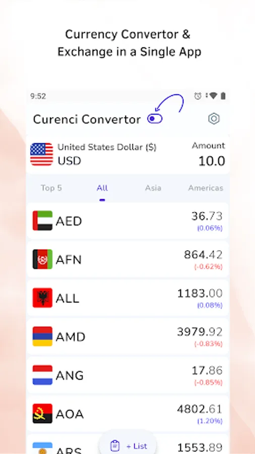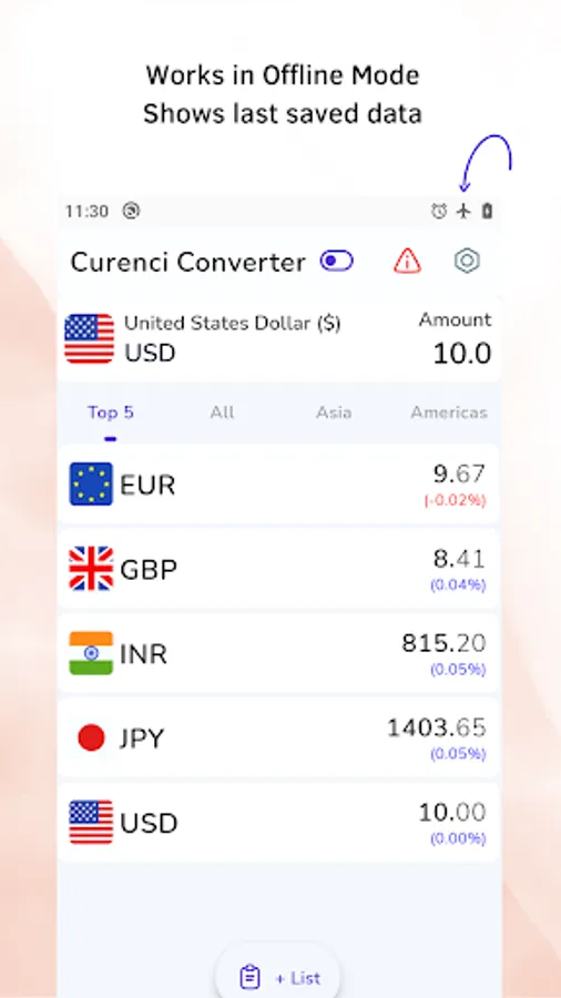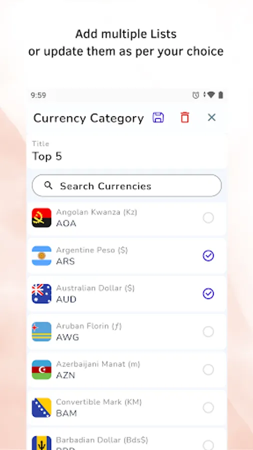 - Make as many lists as per your choice in Currency Converter.