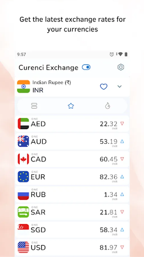 - Add your currencies as Starred item to quickly view the latest exchange rates for select currencies.