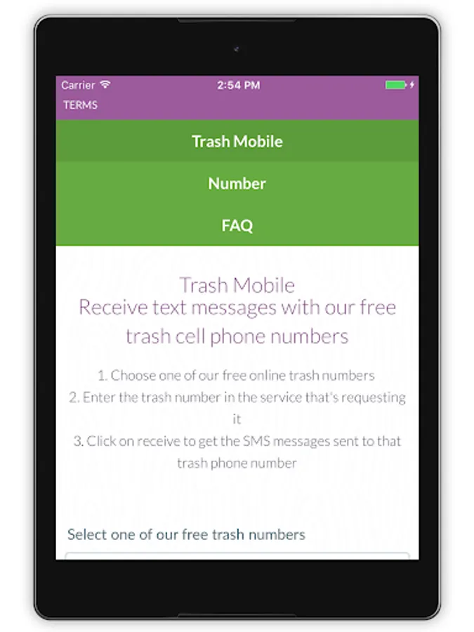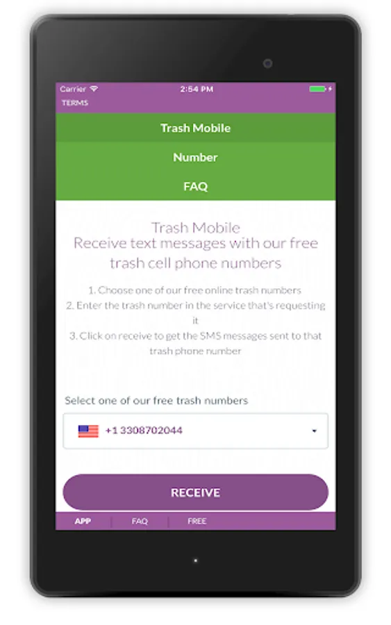 Our trash mobile tool is free to use. Just take a trash number we provide here and enter it in the service, which is requesting SMS verification or your real cell phone number