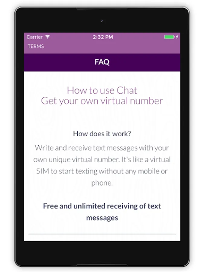 Write and receive text messages with your own unique virtual number. It's like a virtual SIM to start texting without any mobile or phone.