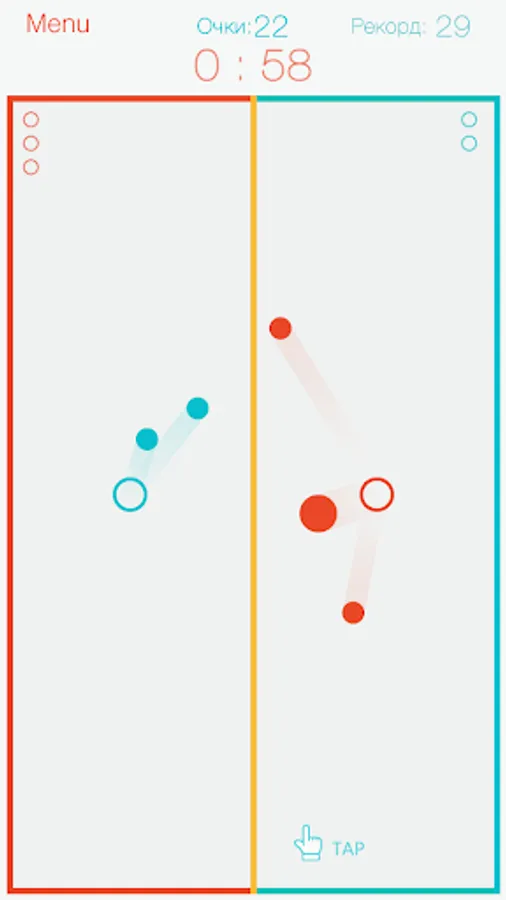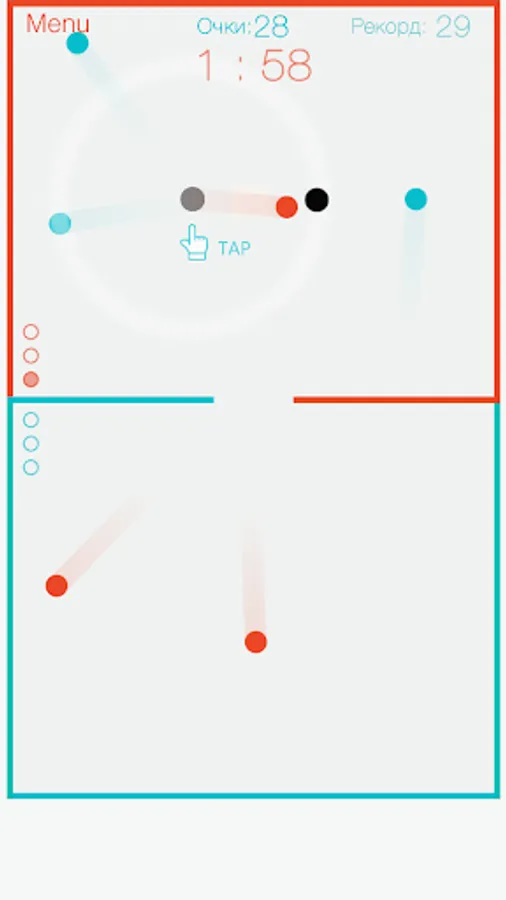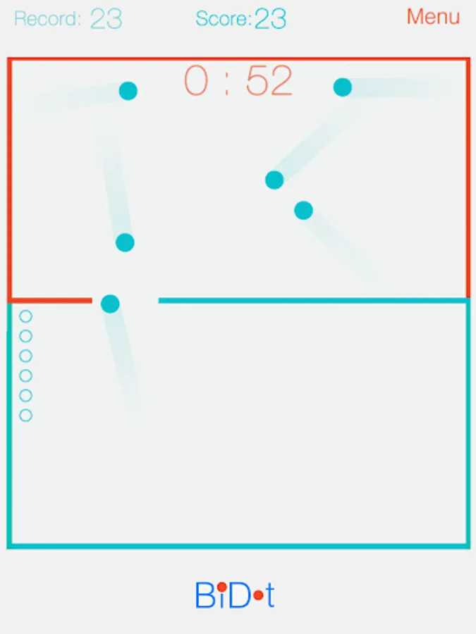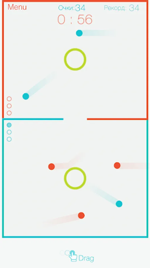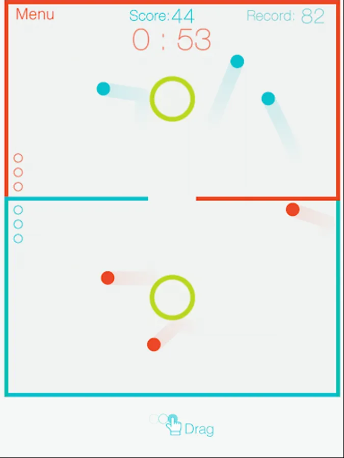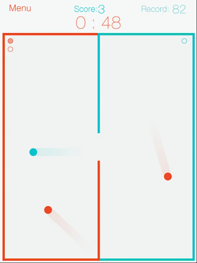 Separate blue and red dots by moving separator door from side to side. As dots randomly bounce around, your task is not to let them get to the area where they don't belong.