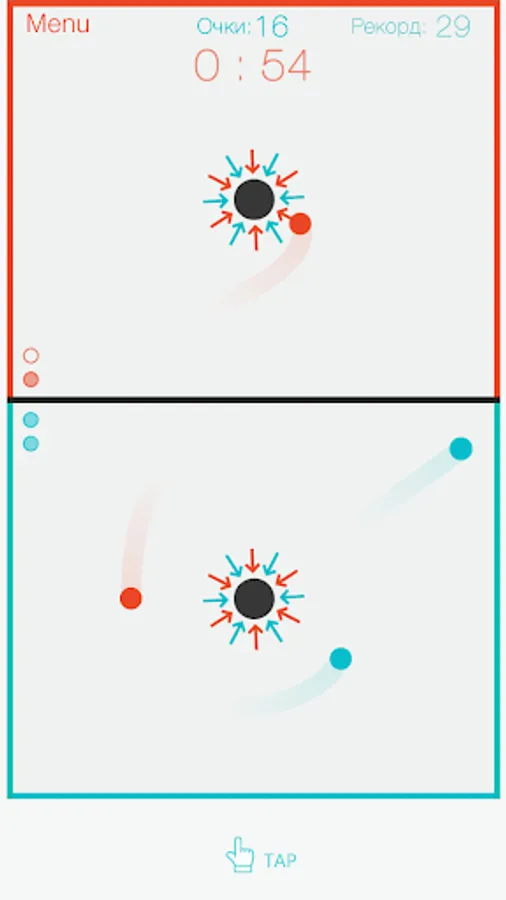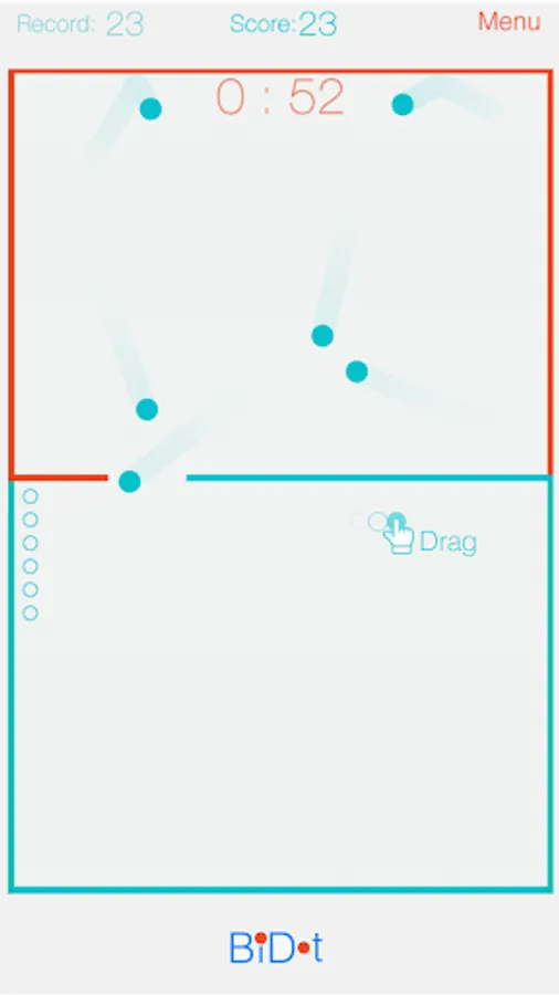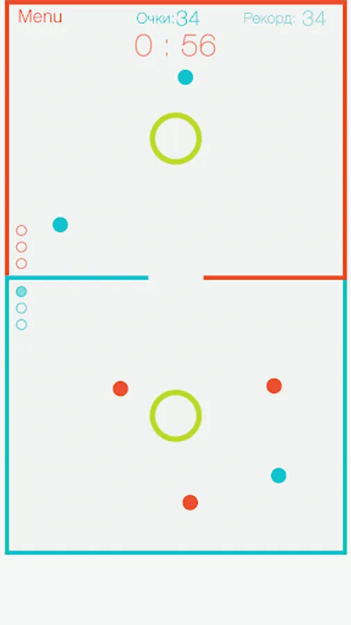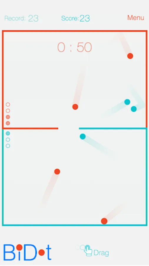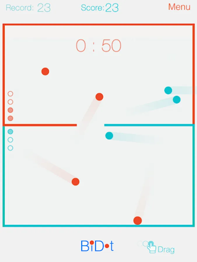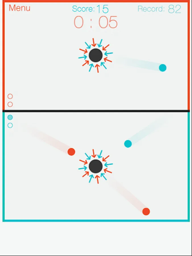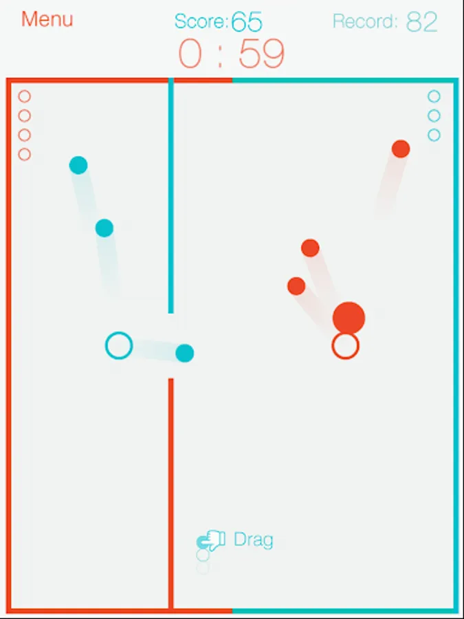 Separate blue and red dots by moving separator door from side to side. As dots randomly bounce around, your task is not to let them get to the area where they don't belong.