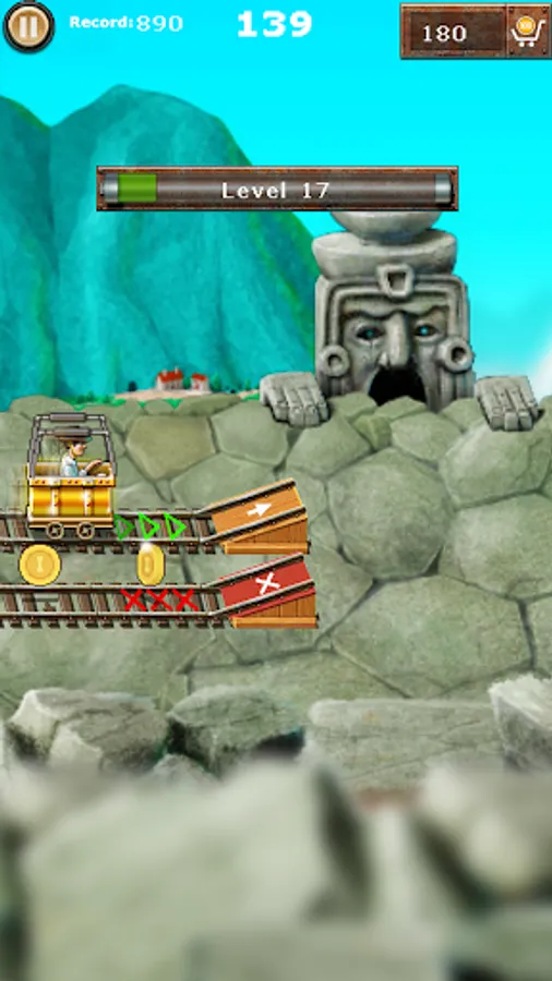 Swipe in time to jump on a different rail path and pave your way through the mine.
