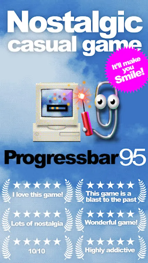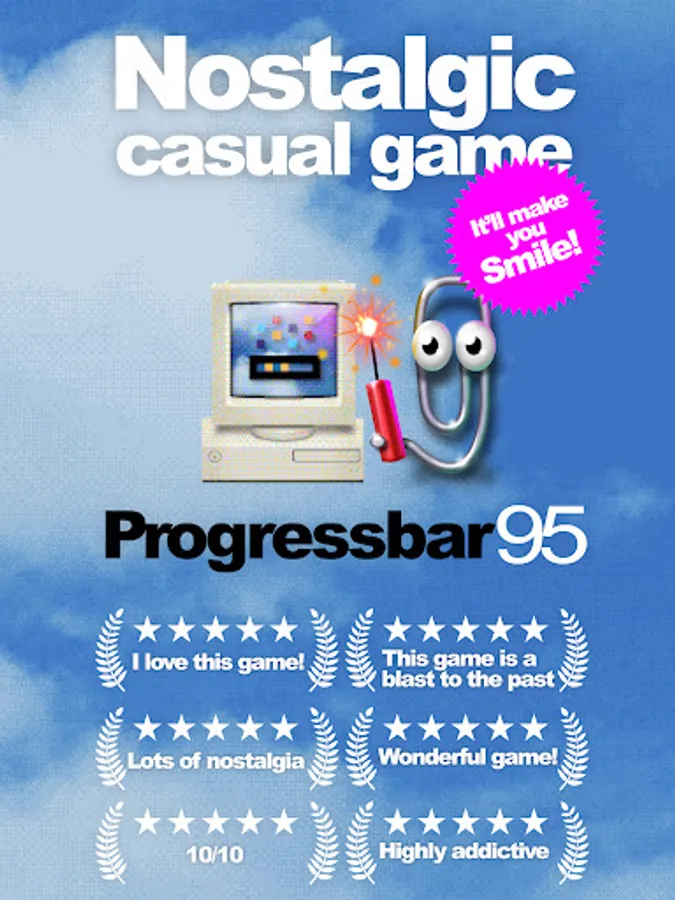 Progressbar95 is an original, nostalgic computer simulation game. Players will be pleasantly surprised by their favorite old windows, retro designs and cute characters on their mobile device. A smile and pleasant memories are guaranteed.