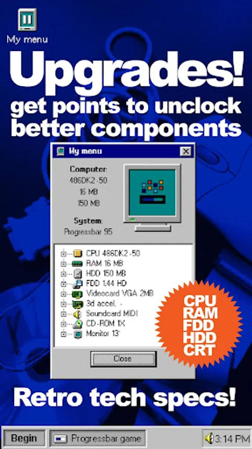 Progressbar95 is a casual game, but a very addictive one. Vintage computer simulator game with old pop-ups and hardware upgrades.