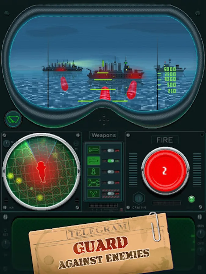 - Upgrade armor shield of your submarine and upgrade speed of your torpedoes
