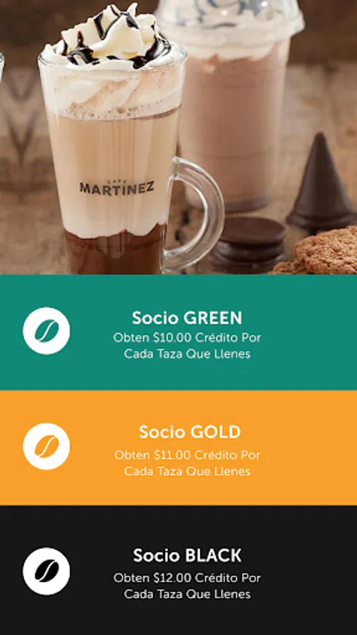 1. For joining our benefits program called "Club Café Martínez"; Add Credits and you have benefits designed for you!