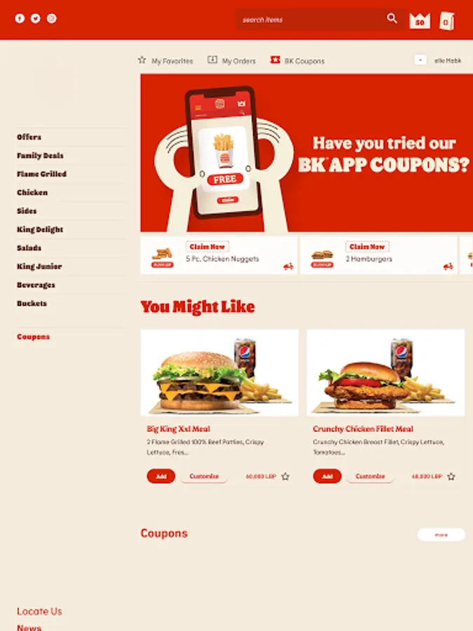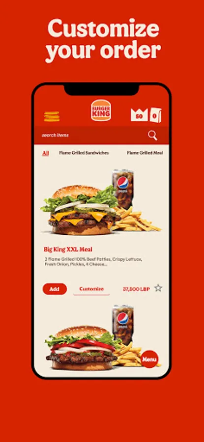 By Using BK Lebanon Mobile App, you will be able to order, pay, receive and unlock secret deals from burger king with a click of a button!