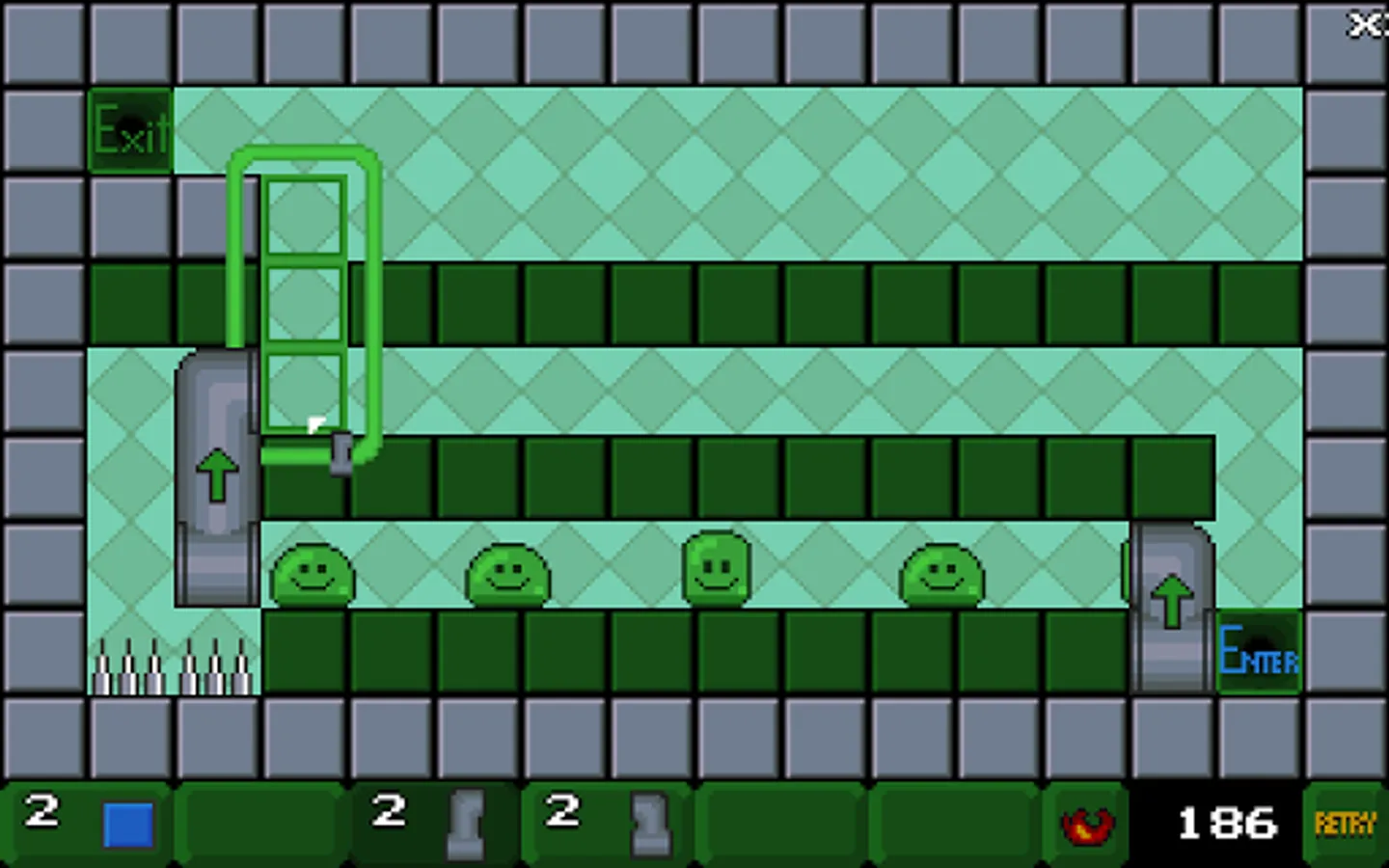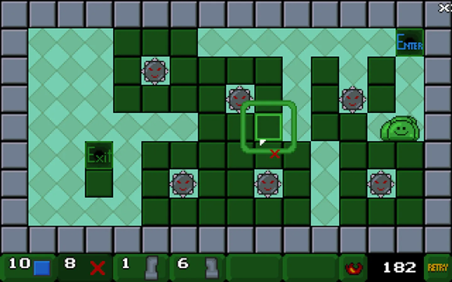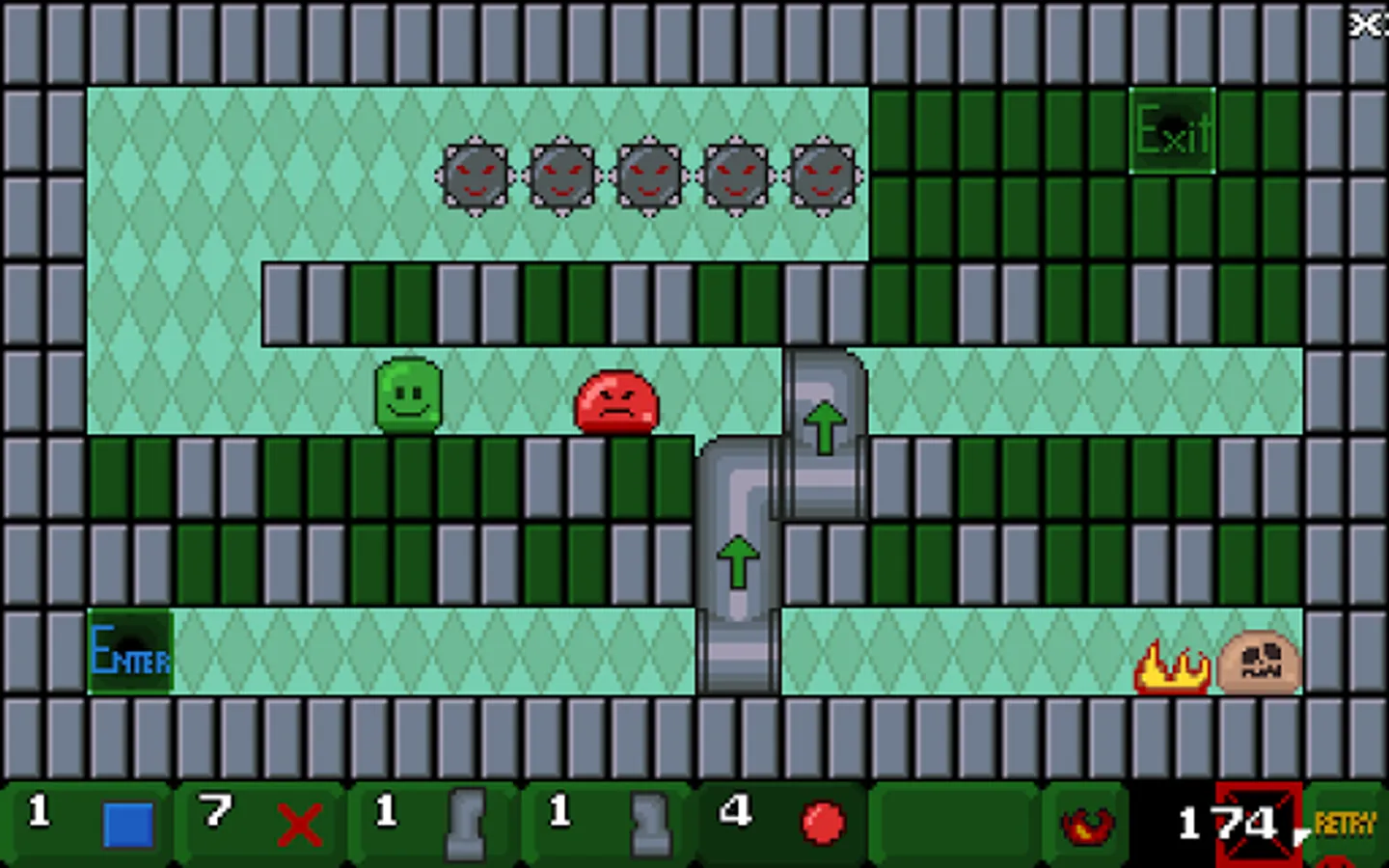 Slimeomancy is the ability to control and manipulate slime. In this puzzle game, you can do just that. Pixel by pixel, the slimes will march to their doom. It's up to you to solve each puzzle with problem solving and critical thinking. It's only a dollar, and I hope you will play. This indie game sports some retro 8-bit graphics that define the genre.