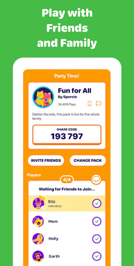 From Sporcle, the world's largest trivia company, comes Sporcle Party. Challenge friends to topics from movies, geography, sports, literature, history and so much more. OR make your own pack. Perfect for office parties, classroom fun, baby showers and playing with friends - in person or virtually.