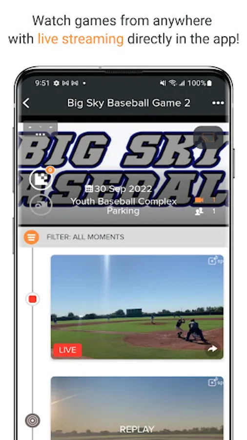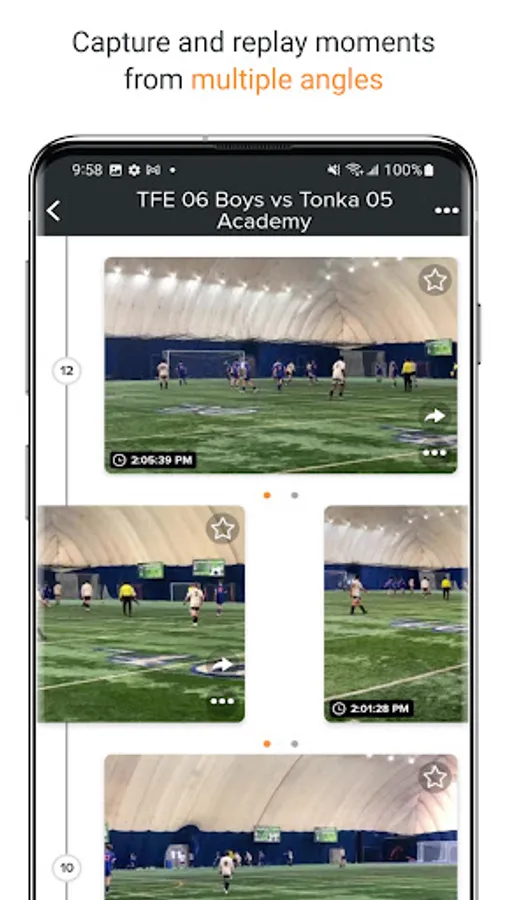 Plus, add multiple smartphone cameras and everyone at the game can save highlights just after they happen, replay them seconds later and share them instantly. Email us at contact@sporfie.com to learn more and activate your account for live streaming.