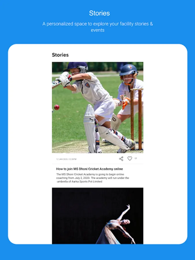 Students can update instructors/coaches on their leaves by sending instant leave requests and receive notification alerts on leave approvals & payments. Both students and parents can track attendance records and view both past & active class sessions. Students can also edit user & guardian details. Follow up on exciting updates & events of your facility on the Stories section.