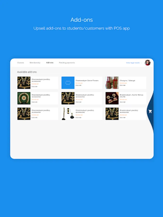 Sporfy POS offers tools for the front-desk at your facility/studio to easily enroll students/customers and manage payment reconciliation. No more endless waiting for services, as POS provides a consolidated platform to manage all your payments, fees collections and orders on the go using your tablet device.The software system automatically syncs in all your orders, customer data and inventory to your device which enables you to handle all business services from a single point of sale device.