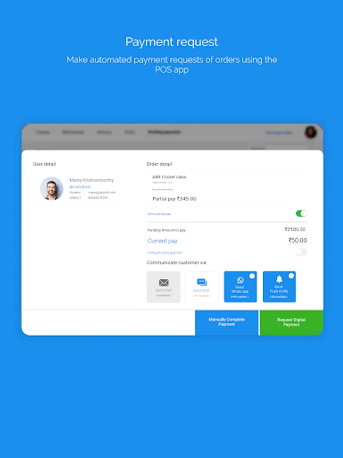 Make hassle free payments via cash, payment wallets, aggregator payments and digital payments via SMS, Email or Whats-App with a branding of your own.