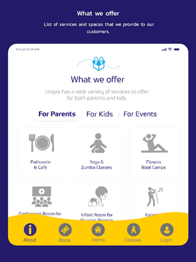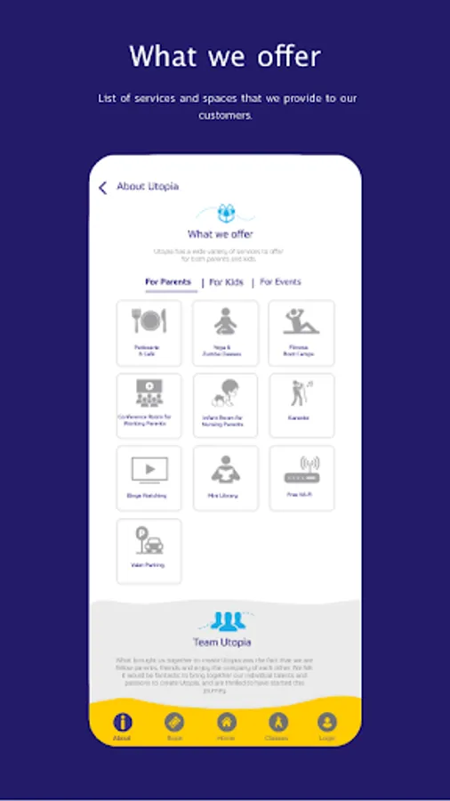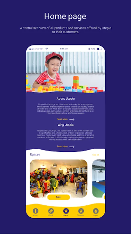 Utopia fills the huge void that exists in the city for an ecosystem where parents and kids together get to unwind, get fit, play and eat all under one roof. While there are ample stand-alone fitness areas, kids play areas, Cafés, activity centers and media zones, there is no integrated facility where all of these services seamlessly come together for parents and kids alike. Utopia is for you, if you are a parent like us who loves to relax over a cup of coffee and a fiction novel, or keen to get onto a fitness routine or maybe even catch up on your binge-watching or karaoke passions, while your child is happily crawling, playing, climbing, swinging and running around under safe supervision.