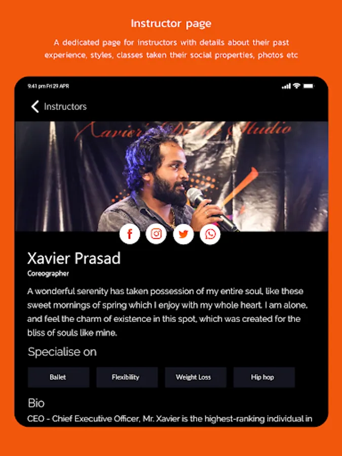 “Life is the most creative art we experience. We are often unable to accept ourselves as we are. We are in constant search to create an identity for ourselves, to discover the beauty within. In this search for one’s identity we plunge into the river of life and explore the unknown, through the unique and creative art of DANCE… In search of dancers’ identity Xavier’s Dance Studio unfolds its mystery that is concealed from the world within.”__[Xavier Prasad J]