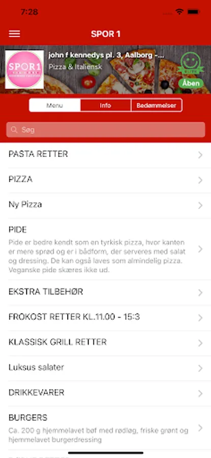 Bestil pizza, burger, pasta, m.m. med få tryk, nemt og hurtigt!