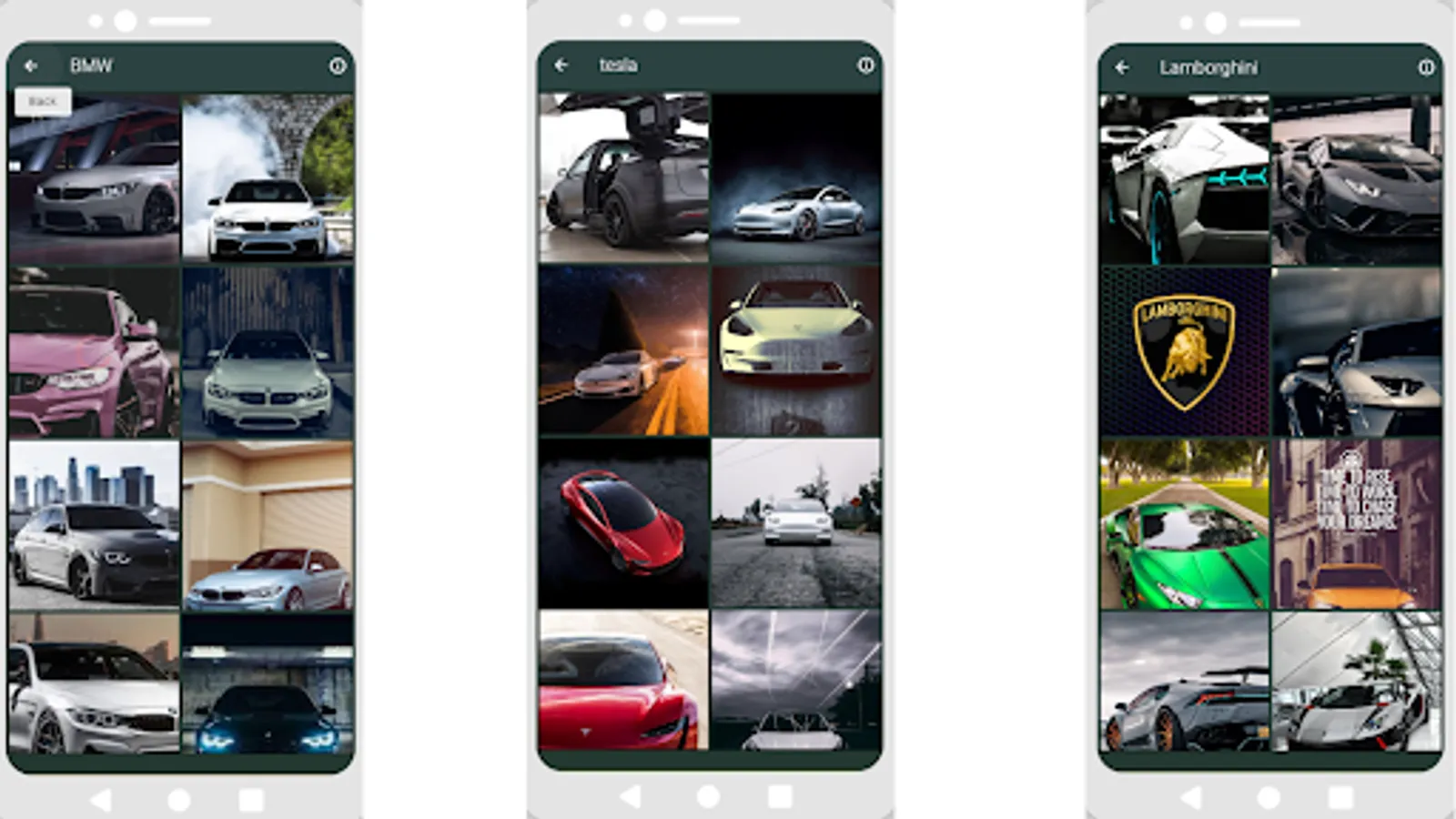 this app contains sport car wallpapers like: BMW, Mercedes benz, jeep, tesla, etc