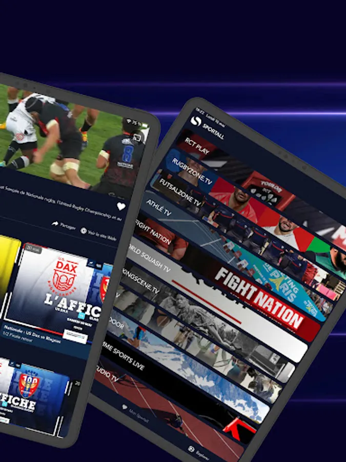 With Sportall, follow all your favorite sports directly from your smartphone, tablet and connected TV. Access LIVE events, REPLAYS, documentaries, interviews...: