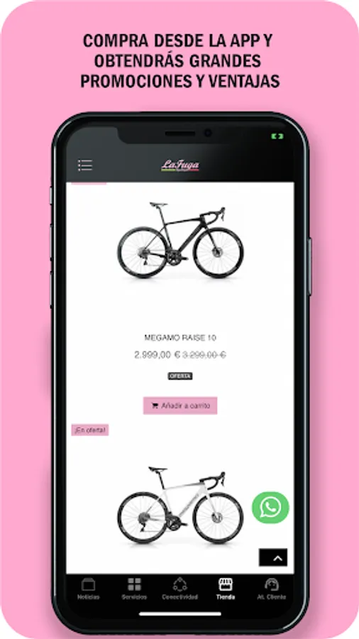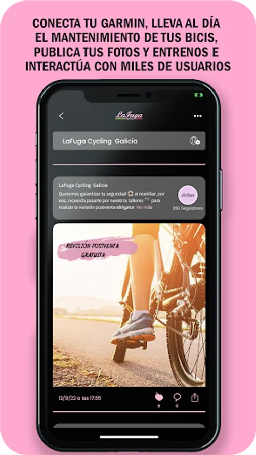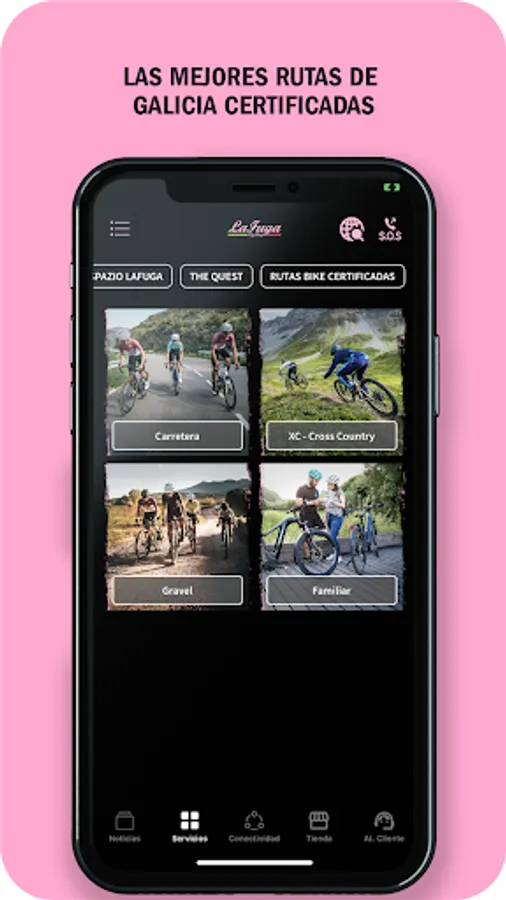 Become part of LaFuga Cycling thanks to our App, full of advantages, experiences, certified routes and outings to get to know and enjoy all of Galicia. You will benefit from: 1. Find out about outings and races, 2. Keep track of your bikes with workshop maintenance notices 2. Receive promotions and personalized offers if you sign up for our #Fugados loyalty program. 4. access and buy our online store, rent bikes,….5. create your own cycling community through its social platform. And many more surprises!