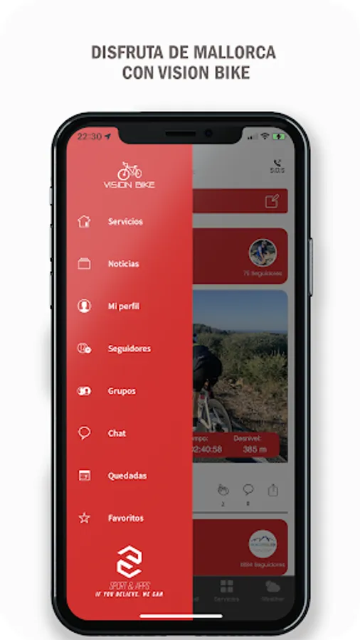 An app where you can organize your trip to Mallorca, rent bicycles of the best brands, book the best accommodation for athletes and have all the necessary information of the cycling paradise in the palm of your hand. Upload your routes, share your activity with other users, find friends, create groups, chat between the components and interact with the thousands of SPORT & APPS users.