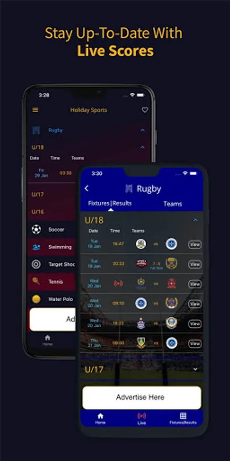 Create sporting events & tournaments, select your school or club’s teams, schedule upcoming fixtures and assign game-day scorers. Score games in real-time, capture points for every game and give your fans the opportunity to follow every minute of every game, live, their way.