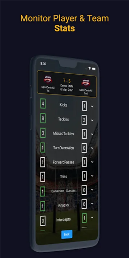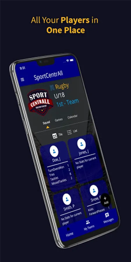 TEAM COACH / MANAGER: Create your squads, select your match day team, record stats on your teams and players. Monitor team and player performance and use real data to develop your teams and players over time.