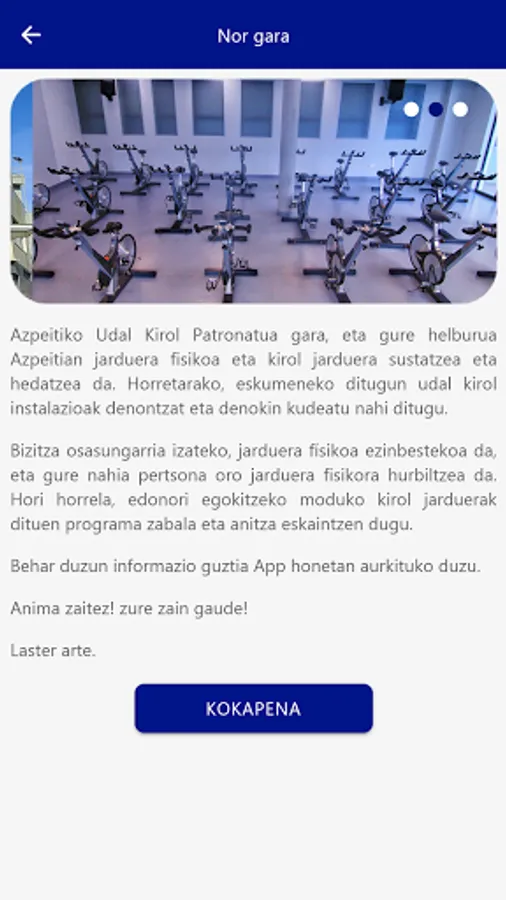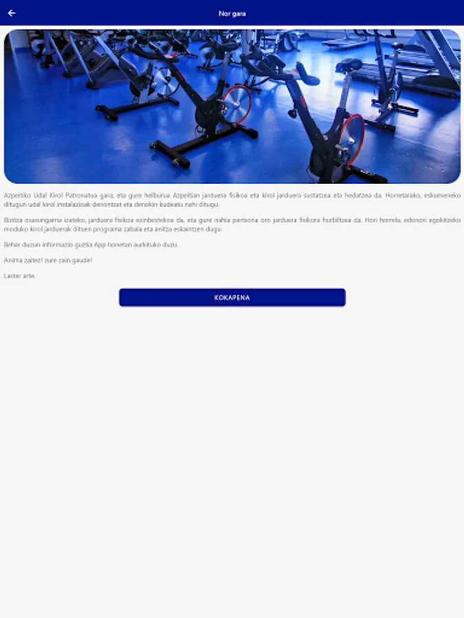 We are the Municipal Sports Trust of Azpeitia, and our goal is to promote and disseminate physical activity and sports in Azpeitia. To do this, we want to manage the municipal sports facilities we have in charge for everyone and everyone.