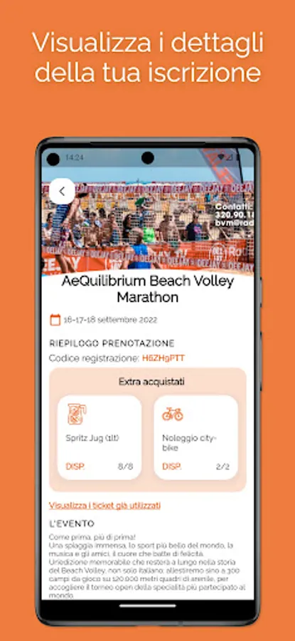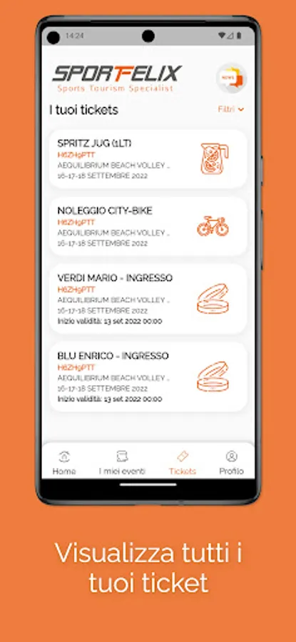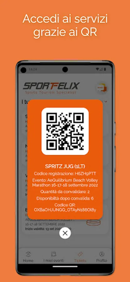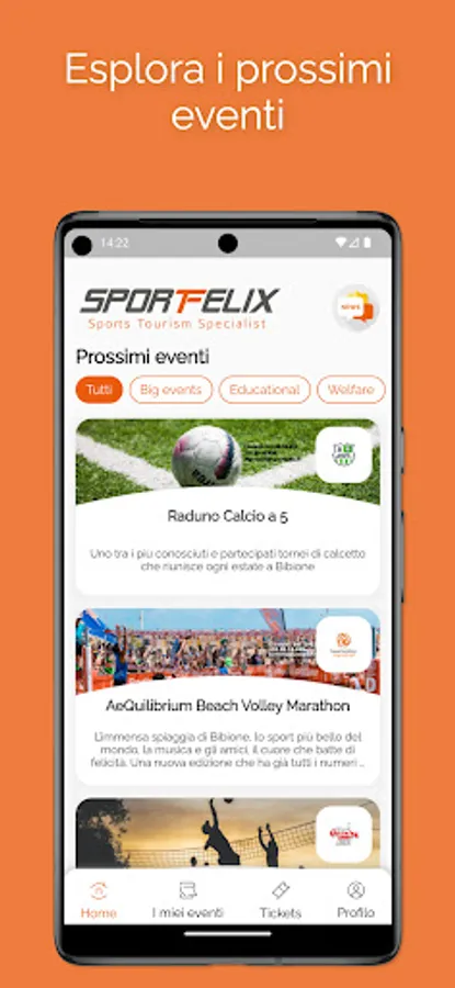 With the SportFelix App you can sign up for your favorite event and easily access all the services thanks to the QR Codes available in your booking. You will also be able to view all the upcoming events, knowing their details and reaching us in one click thanks to geolocation. Finally, receive all updates on the current event thanks to the “news” section.