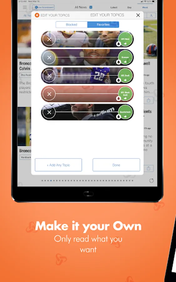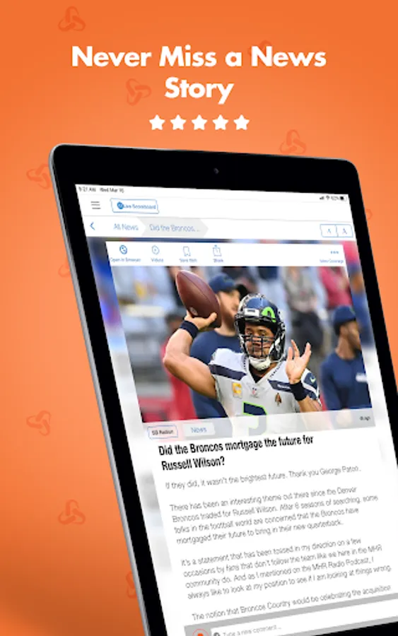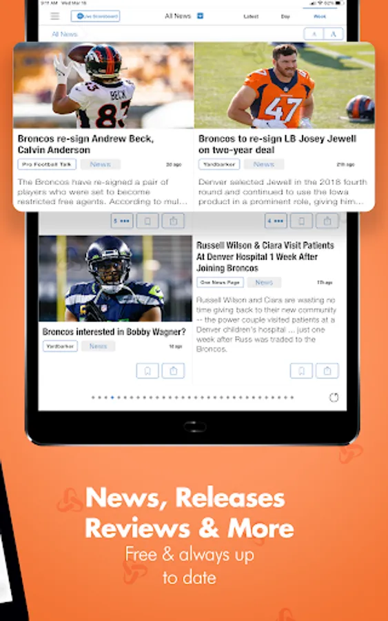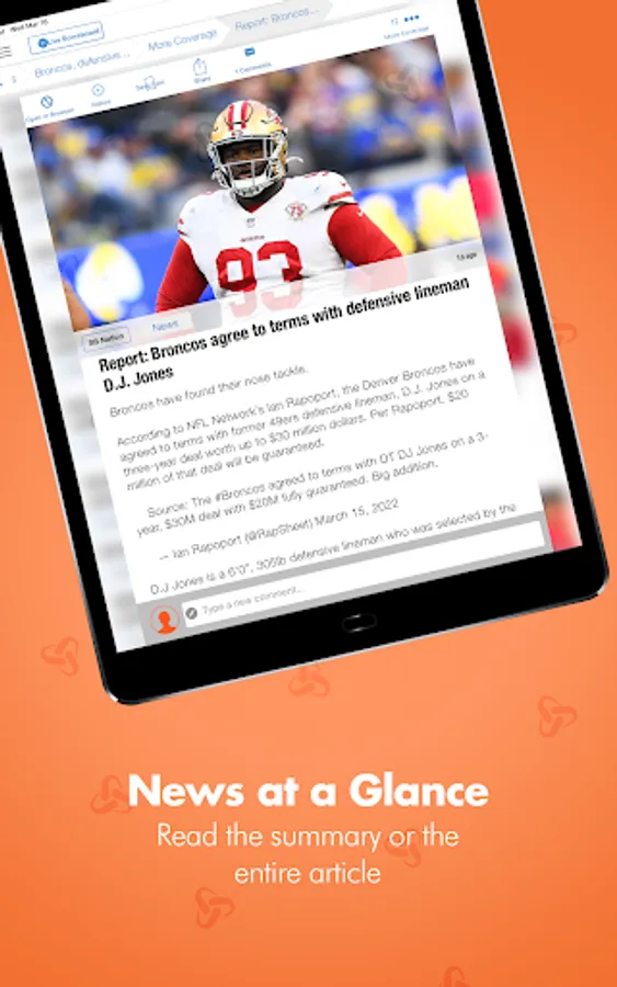* A news summary covering stories about the Broncos from all sources- a clean feed with no repeat stories. See all sources that covered any story with a simple tap