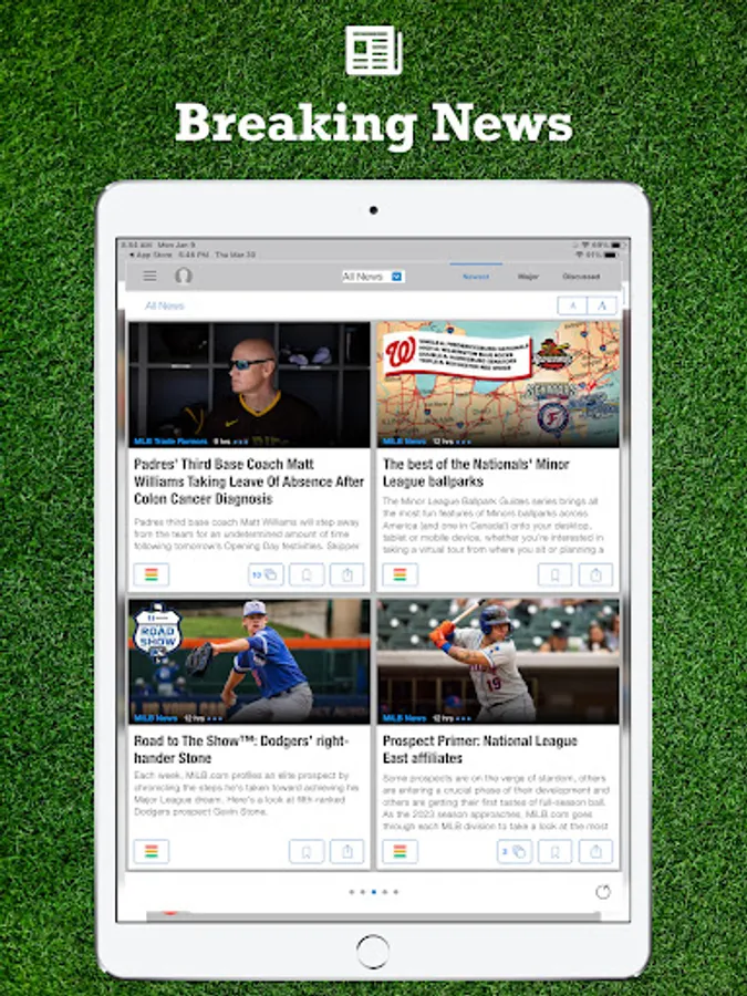 * A news feed covering all relevant news about the MLB news from all prominent news sites and blogs - no configuration is required