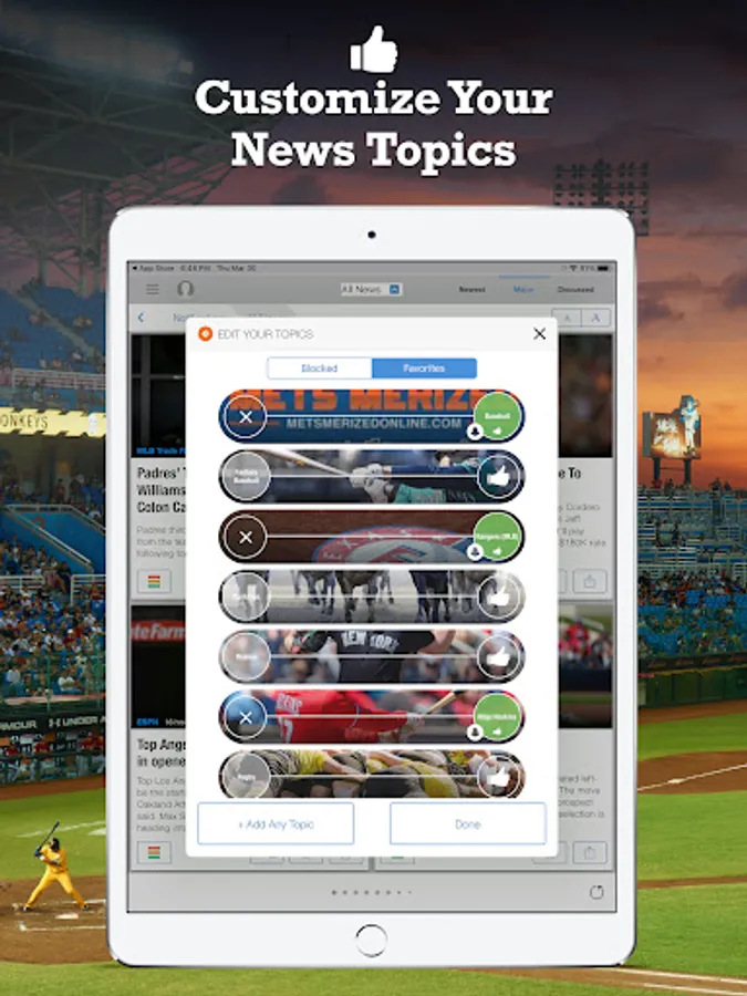* Make it your own - Choose only your favorite topics, block the topics that don't interest you and even block the sources you don't like