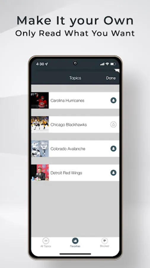 * Make it your own - Choose your favorite topics, the topics you want blocked or even block sources you don't like! Don't bother yourself with news that don't interest you!