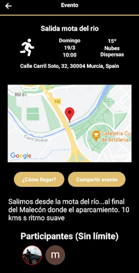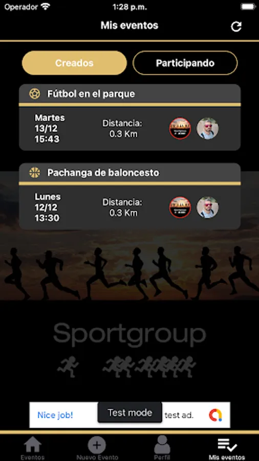 Find athletes like you, of any age, gender, location and sports. Use the search engine located on the screen of upcoming nearby events and it will show you those that meet your preferences in terms of the chosen sport and kms that you have to travel to attend the event.