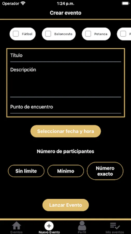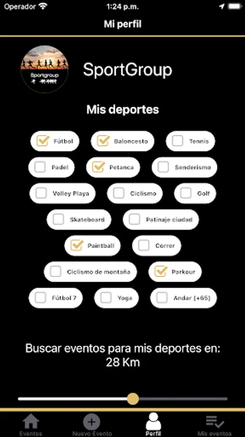 Register and complete your profile. Select your favorite sports, those about which you want to create your own sporting events and receive information about events of interest to you, select the kms you are willing to travel and about which you want to receive event information.
