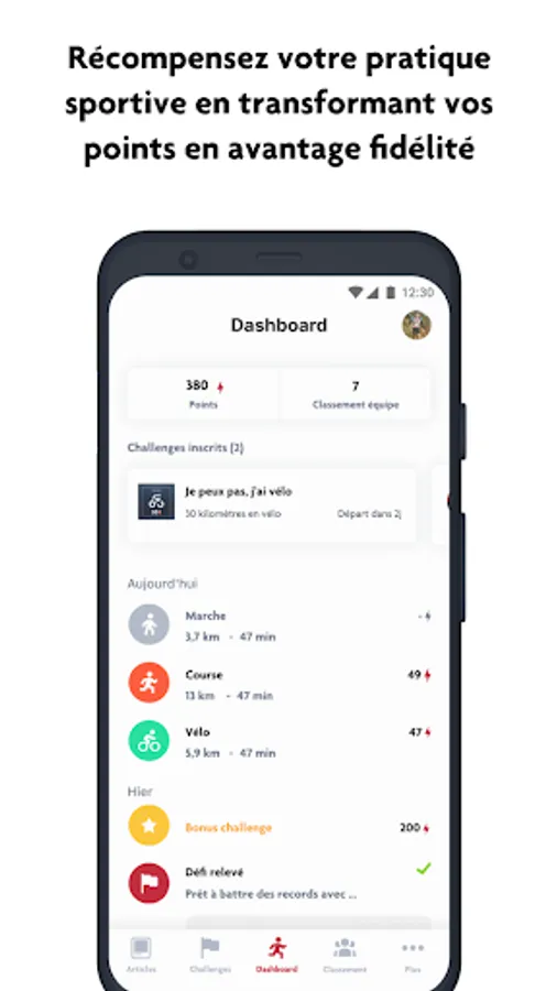 Each day your loyalty account will be credited with the points acquired thanks to your sports practice.